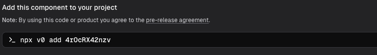 npx v0 add 4rOcRX42nzv