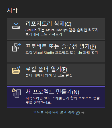 Visual Studio 를 열고, 새 프로젝트를 생성한다.