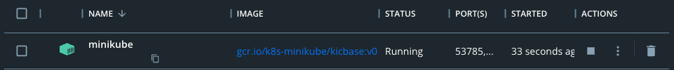 그러면 minikube 라는 이름의 컨테이너 하나가 생성되는 것을 볼 수 있다.