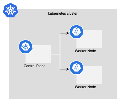 minikube 는 노드 한 대를 이용해서도 control plane 과 data plane 를 동시에 구성할 수 있다. 하지만 노드 한 대로는 재미가 없으므로, control plane 노드 한 대와, worker node 2대를 구성해 보자. minikube 로 구성할 클러스터는 다음과 같다.
